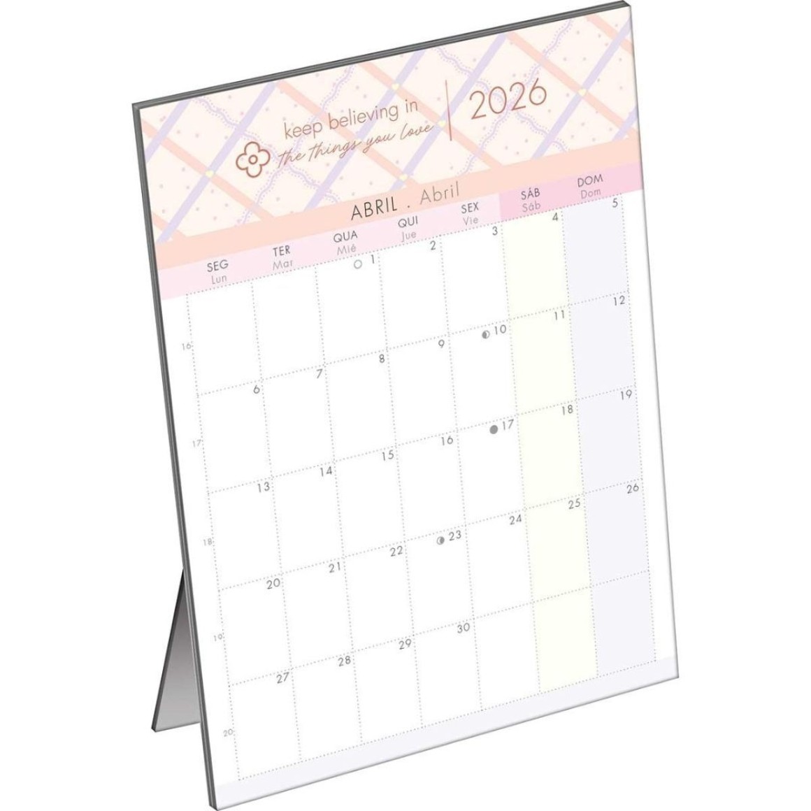 • Suporte Firme: Base estável que mantém o calendário de pé com segurança, garantindo que ele permaneça acessível o tempo todo.